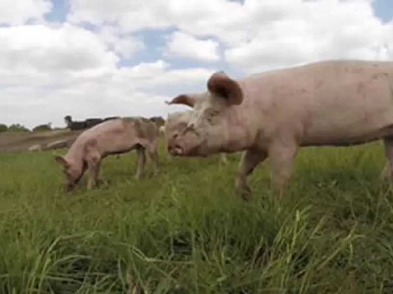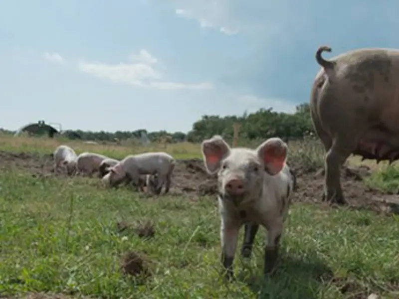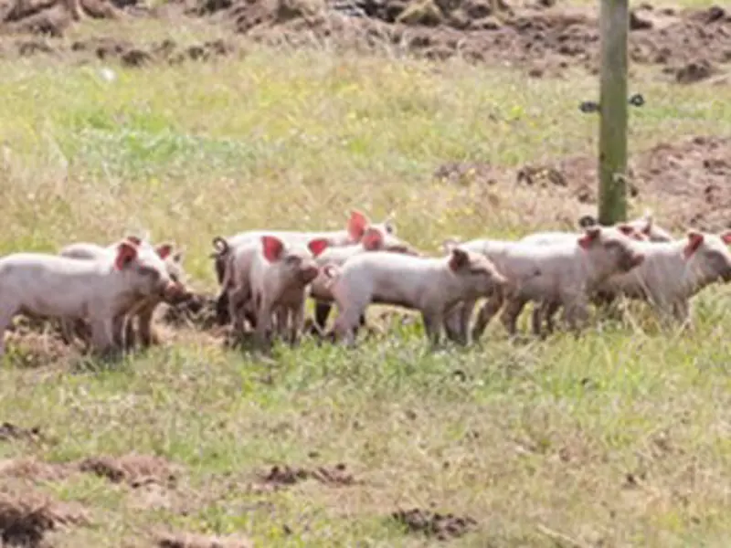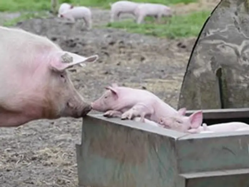 The piglet spends his or her first four weeks with Mum until they are ready to be weaned off milk onto solid food. At this stage they move from the free range breeding herd to the free range finishing herd, and they are placed in large straw filled tents or huts located in acre sized paddocks with continuous outdoor access.